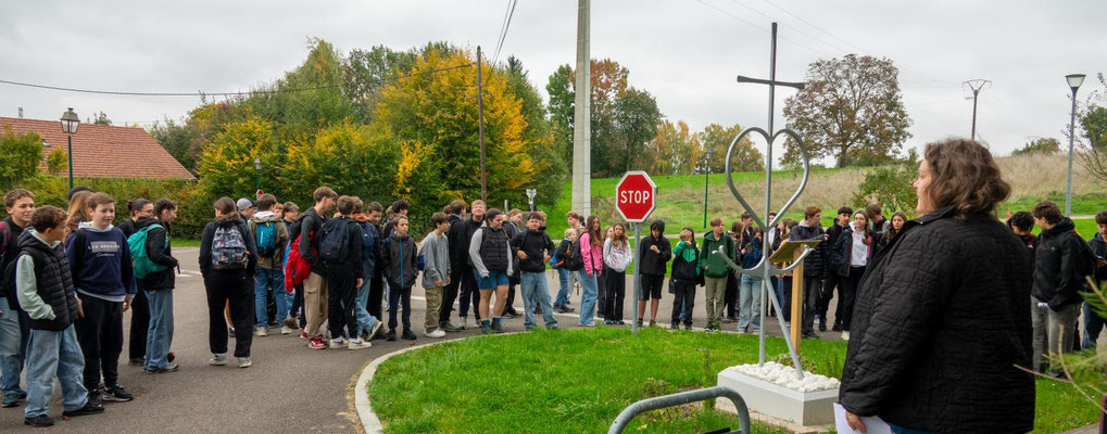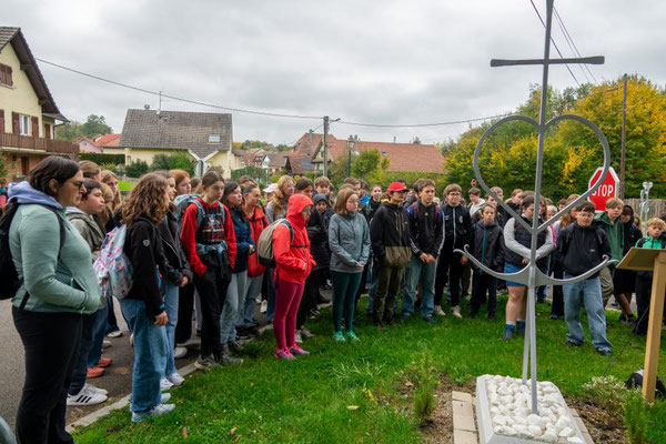 Depuis l’église de Ruederbach, les jeunes ont cheminé en passant par la croix du Jubilé de
