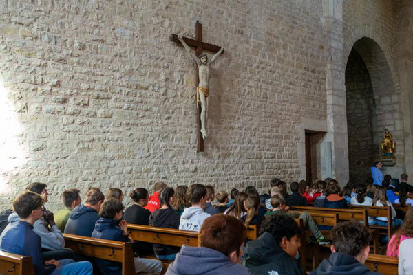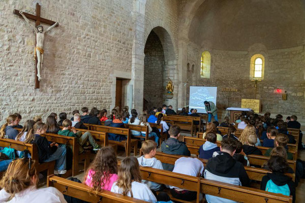 temps de partage autour de l’Évangile de la tempête apaisée et la découverte de la magnifique église